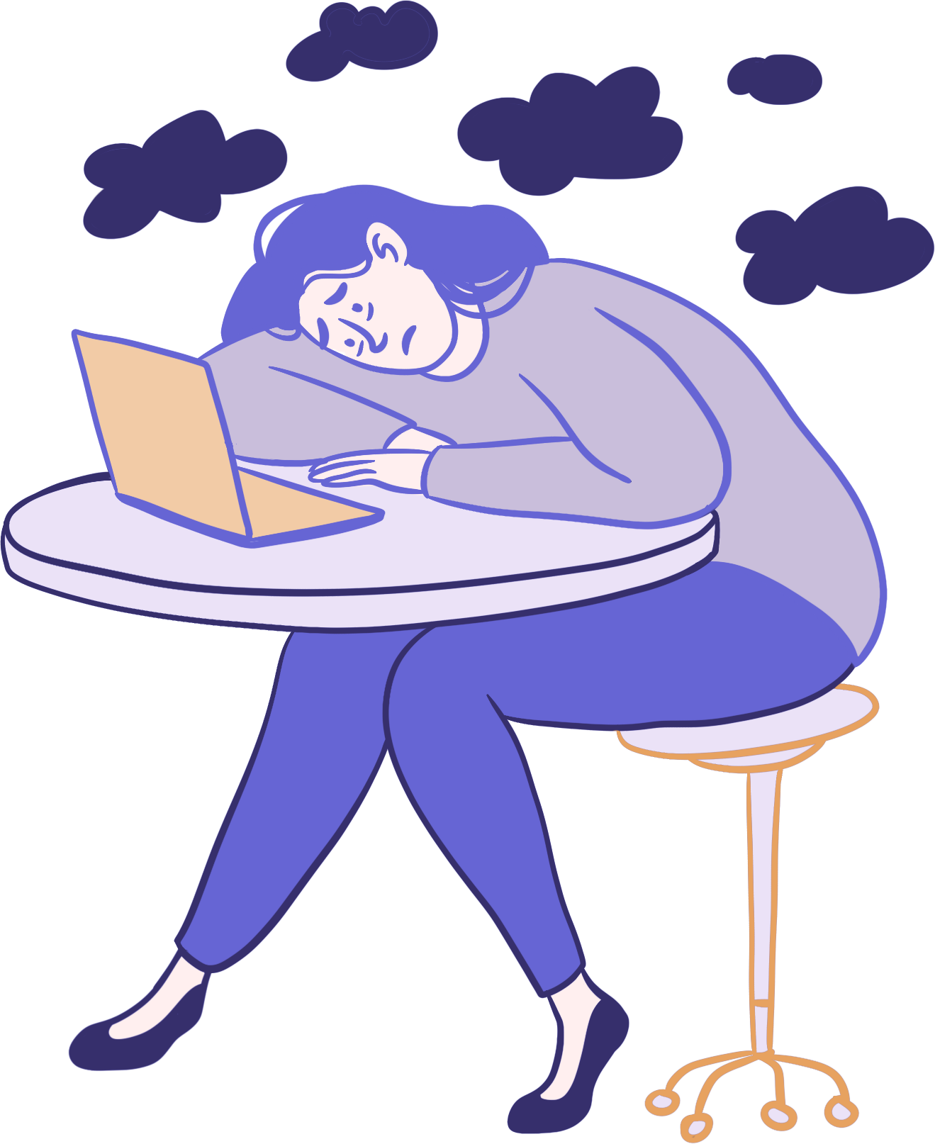 Sada ilustrací pro Soulmio. Ilustrace pro pro posty na sociální sítě k dané tématice - přepracování, rodina vs. práce, stres, digitální detox atp.