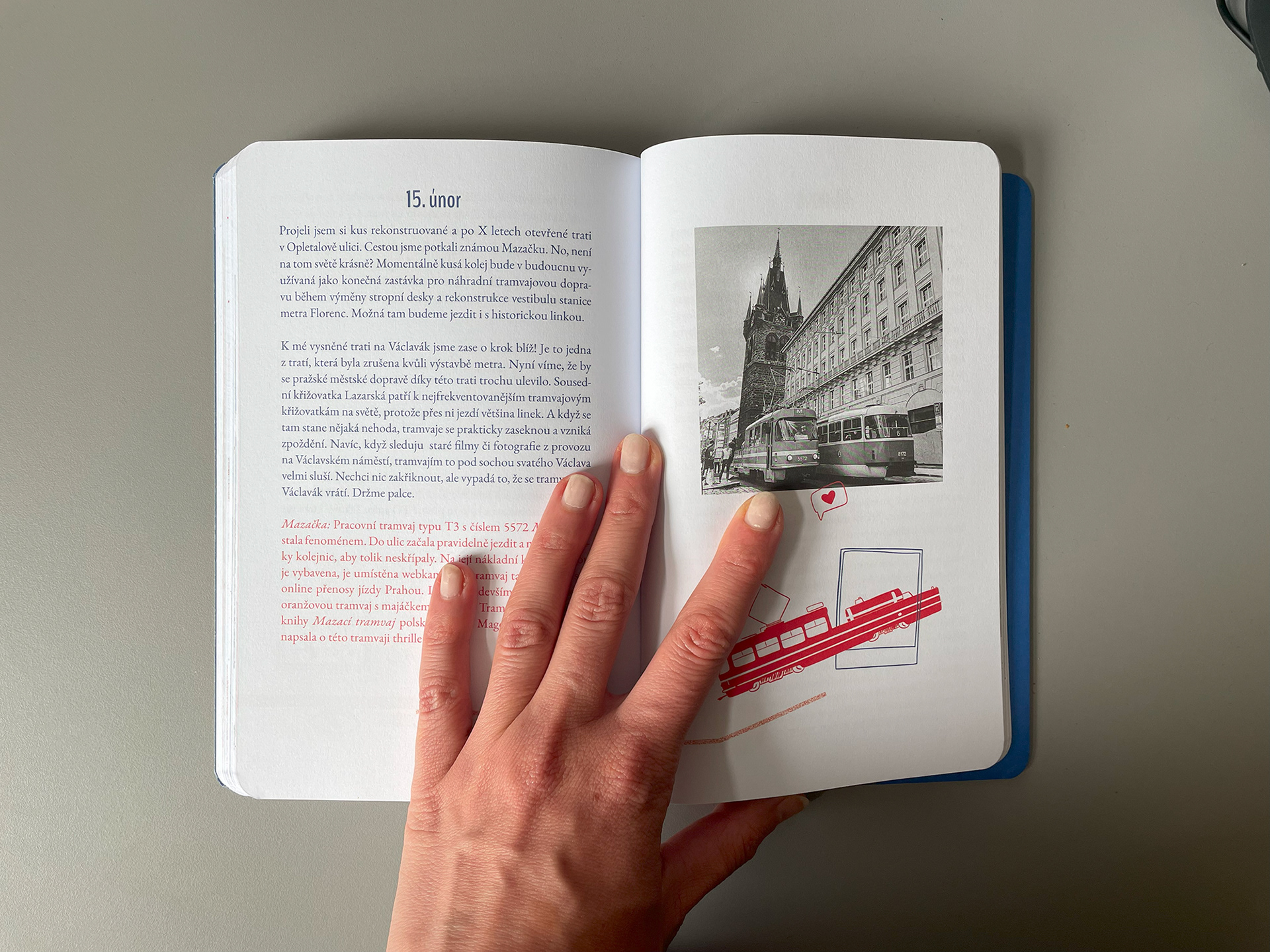 Kompletně jsem oblékla deník tramvajačky od skvělé Karolíny Hubkové. Od obálky po sazbu ilustrace pro jednotlivé kapitoly.